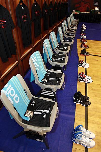 這次體驗會有別一般球聚的點是,主辦單位 adidas 提供所有與會的球友,讓每個人都有自己專屬的球員休息室座位,這樣看起來真的很酷!從衣櫃上個人名牌、T恤、褲子、毛巾、襪子、球鞋、礦泉水,完整一套專屬於你的空間。就算球打得再不好,坐在那個位置也可以「自我感覺良好」XD