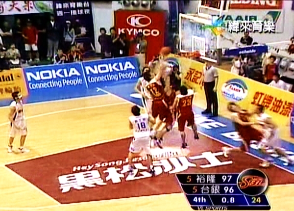 還來不及失望之餘 就看到籃下有一隻手把球在亂軍中給撥進 也就是朱永弘